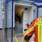 Um 8:53 Uhr wurden wir an diesem Freitag Morgen per Vollalarm in die Rosa-Luxemburg-Straße zu einem Brand alarmiert. Noch auf Anfahrt wurde das Stichwort auf „F2-Y-DL“ erhöht, da weitere Anrufe bei der Leitstelle eingingen und das Stichwort bestätigten. Am Einsatzort angekommen, wurde der Gruppenführer vom HLF 20 durch die Anwohner eingewiesen. Im Zuge der Lageerkundung konnte ein verrauchtes Treppenhaus erkundet werden. Im vorderen Eingangsbereich waren zu diesem Zeitpunkt bereits Flamme zu erkennen (Höhe Briefkästen). Ein Zugang zum Treppenhaus war aufgrund der verschlossenen Tür nicht möglich. Mittels Türöffnungsrucksack wurde der Schließzylinder durch eine Einsatzkraft gezogen, so dass sich der Angriffstrupp Zugang zum Gebäude verschaffen konnte. Nachdem die Tür geöffnet war, begab sich der Angriffstrupp vom HLF 20 mit einem C-Rohr ins Gebäude. Bereits im Eingangsbereich konnte der Brandherd, direkt unter dem Briefkasten, ausgemacht werden. Dieser wurde durch den Angriffstrupp abgelöscht. Da sich die Rauchausbreitung über das gesamte Treppenhaus erstreckte, wurde der Drucklüfter in Stellung gebracht. Parallel dazu wurden alle Mieter, zum Teil unter Verwendung von Fluchthauben, aus dem Gebäude evakuiert und dem Rettungsdienst übergeben. Abschließend kontrollierten für den gesamten Wohnblock auf Rauchgase. Nachdem alle Maßnahmen der Gefahrenabwehr abgeschlossen waren, übergaben wir die Einsatzstelle an die Polizei. Ein Dankeschön geht an die Kameraden aus Lützow für die schnelle Einsatzbereitschaft und Bereitstellung von Atemschutzgeräteträgern.