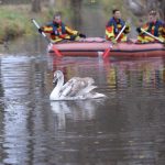 Über das Ordnungsamt wurden wir an den Burgsee alarmiert, hier sollte ein Schwan mit einem gebrochenen Bein auf dem Wasser sein. Mit unserem Schlauchboot konnten wir das Tier mithilfe eines Fangnetzes einfangen. Anschließend haben wir das Tier zu einer Ortsansässigen Tierärztin gebracht.
