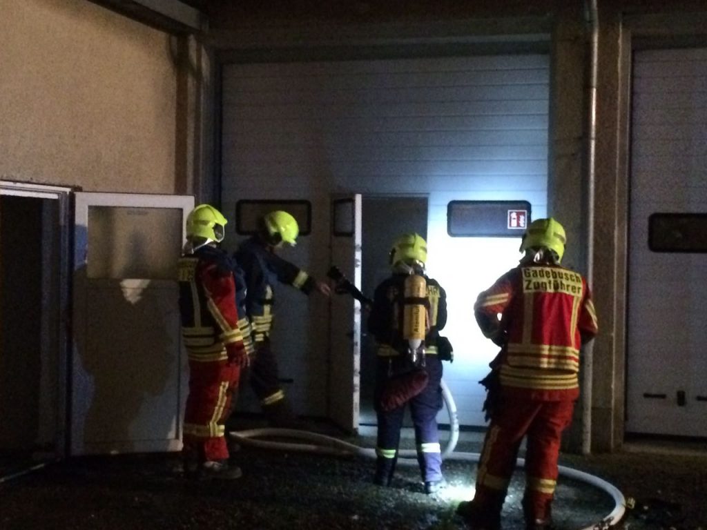 Kurz vor Mitternacht wurden wir mit Vollalarm in die Erich-Weinert Straße alarmiert. Nach einem Knall auf dem Gelände des Deutschen Roten Kreuzes konnte eine Rauchentwicklung aus einer Garage der Wassergefahrengruppe festgestellt werden. Mit Hilfe von Angehörigen der Wassergefahrengruppe, verschafften wir uns Zugang zu den Räumlichkeiten, doch es konnte realativ schnell Entwarnung gegeben werden. Die Ursache war der Brand eines Motors der dort abgestellten Rettungsboote, den wir schnell unter Kontrolle hatten. Wir übergaben die Einsatzstelle an die Polizei und verlegten zurück ins Gerätehaus.
